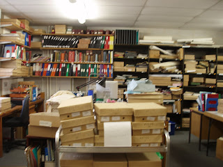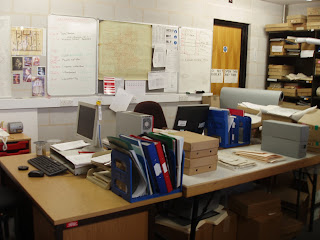 What is it? Document Reception was originally designed to be exactly that – the place where we received any new deposits of records, ready for sorting. Since we have grown as an office and are struggling for space, this room is now also the place where the sorting, listing and cataloguing of records happens. As you can see from the photographs it can sometimes be a bit of a competition for space.