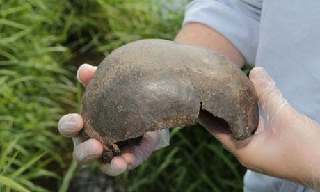 “On 20th March 2013 West Mercia Police were contacted by a member of the public. They had discovered what appeared to be a human skull to the west of Eckington Bridge on the northern bank of the River Avon (SO 92895 42236) whilst walking their dog. The skull was not complete with only the upper cranium represented. West Mercia Police believed the skull to be potentially archaeological in origin and contacted Worcestershire Archaeology. It is suggested that the skull is that of a female due to the absence of prominent brow ridges and the overall slightness of the skull.