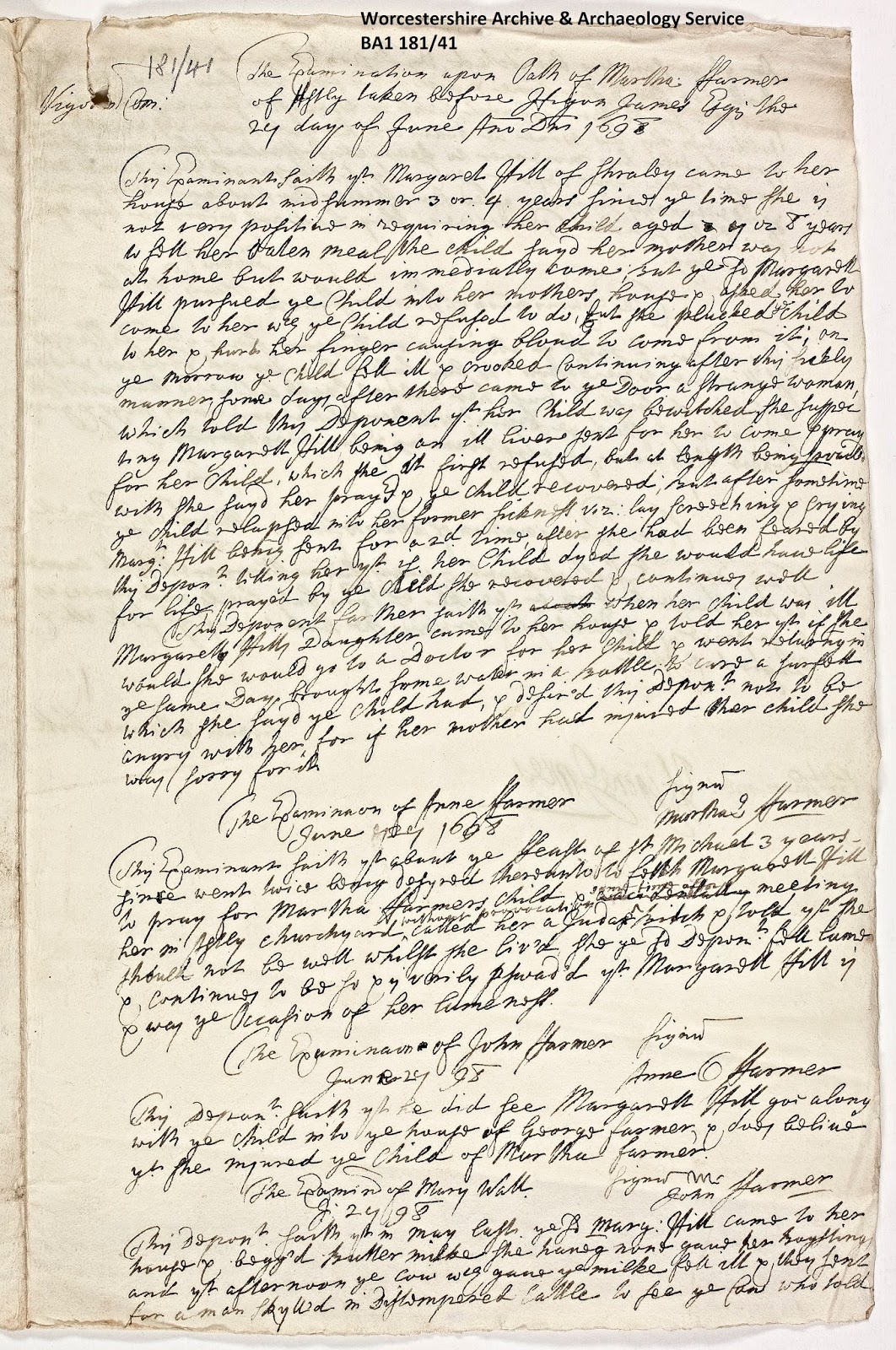 Another was in 1698 when six people testified against Margaret Hill of Ipsley. Again it seems a little complicated. The initial complaint related to Margaret going round to the house of Martha Farmer and when a child hurt his finger and bled and later became sick they accused Margaret of bewitching him. Other accusations relate to a cow, pig and a calf which died and Margaret was blamed.